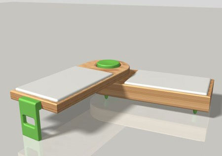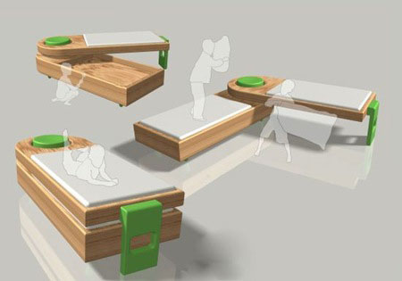 折叠的上铺与下铺 0 折叠的上铺与下铺 Blogger 四月 05, 2009 0 来自设计师 Joe Luker 的作品,不错的设计,转盘形式的床铺,随意可以扭转出来另一个床位给朋友,或者是自己的孩子。如果底下那个槽的深度再深点就可以适合婴儿,两侧可以当做格挡,防止小孩翻滚。睡在上面的父母,一转头就可以看到婴儿沉睡的容颜。[link] 评论