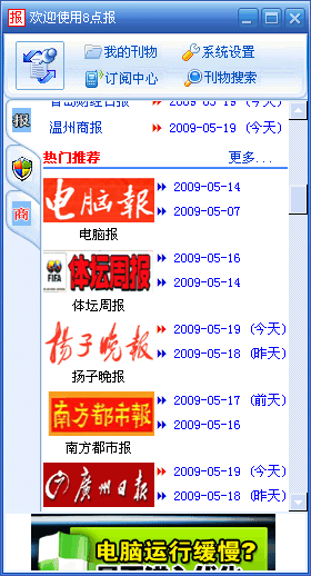想天天都可以免费看到全国各种的最新报纸的电子版么?只要您的电脑连接到网络上,你就可以足不出户的免费浏览到多种国内报纸的最新消息、新闻。有报天天读,读报、读书、知天下事也!让我们来体验一下在电脑里阅读当天报纸的方便吧。